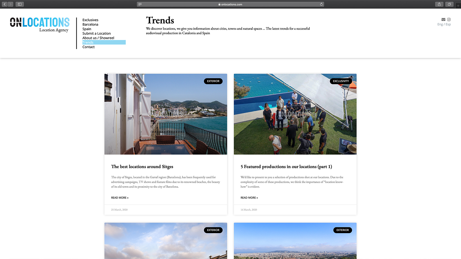 Para esta empresa, especializada en localizaciones cinematográficas, desarrollamos un sitio web visual, minimalista y claro, dando protagonismo a los espacios.