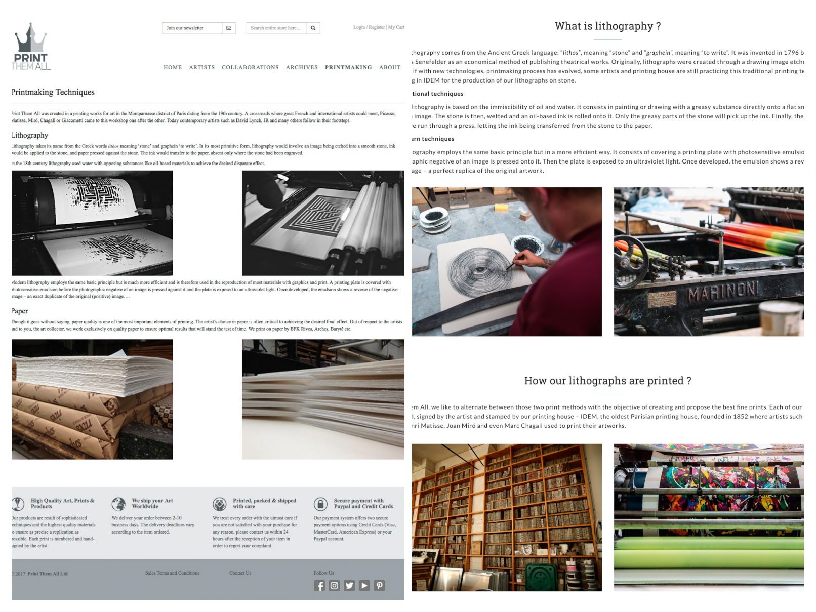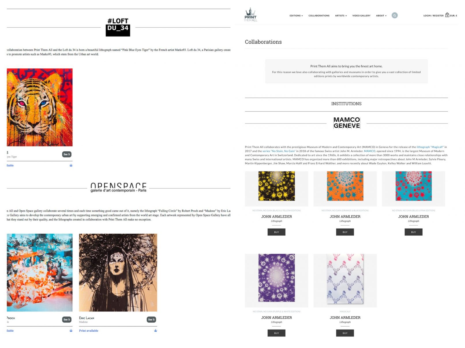 Para esta galería y tienda de arte online suiza, asumimos la migración de su plataforma Magento, así como el diseño web de las páginas clave.
