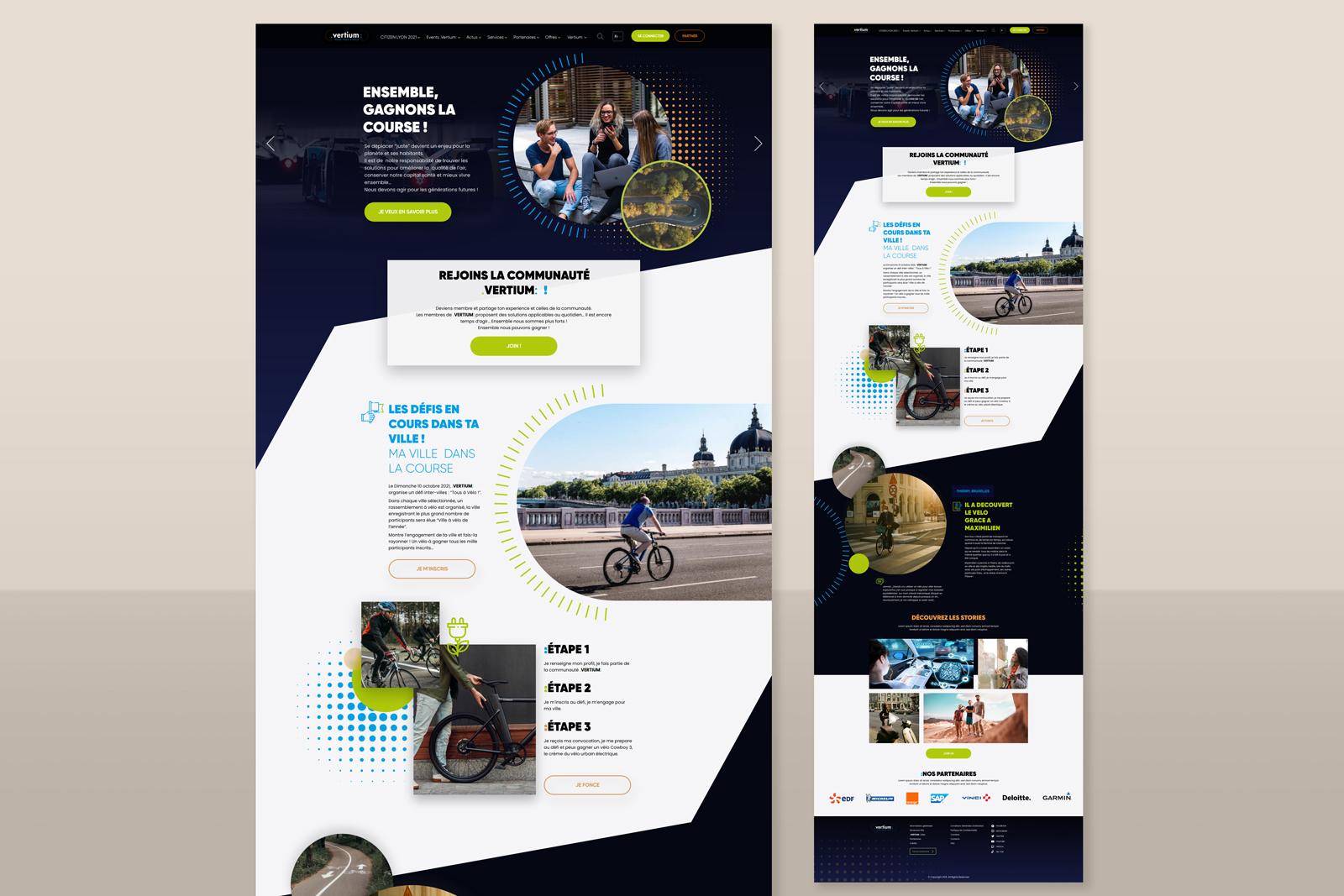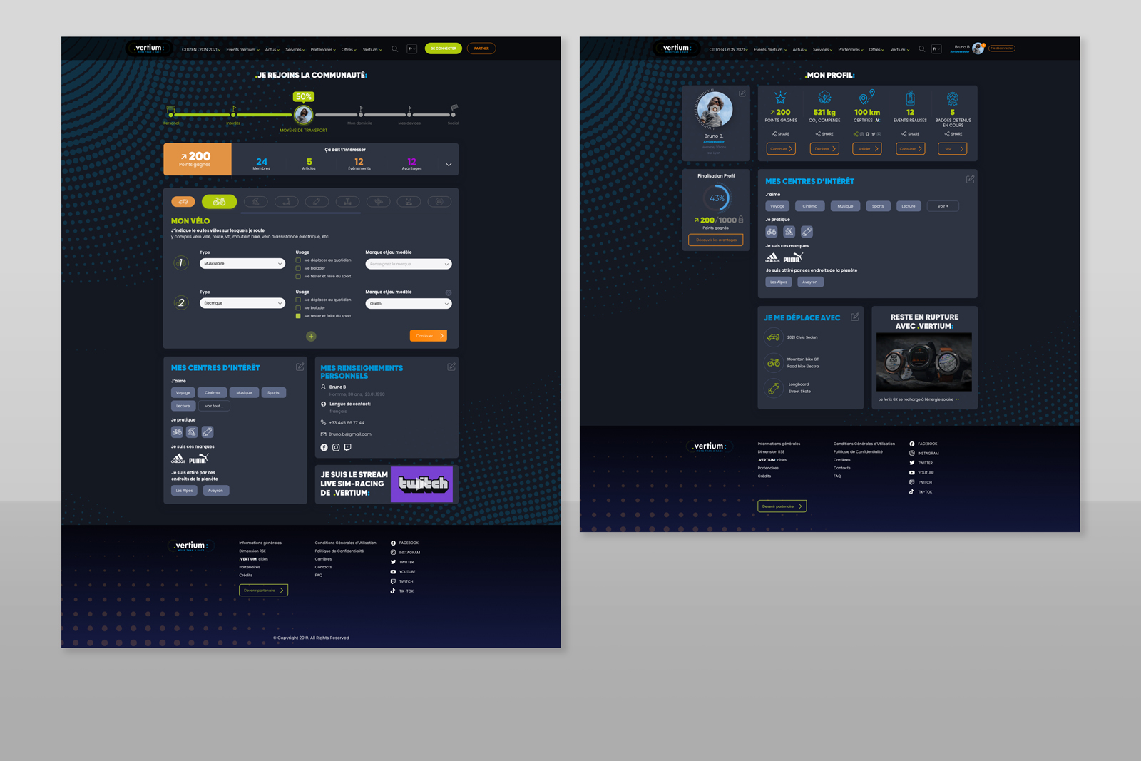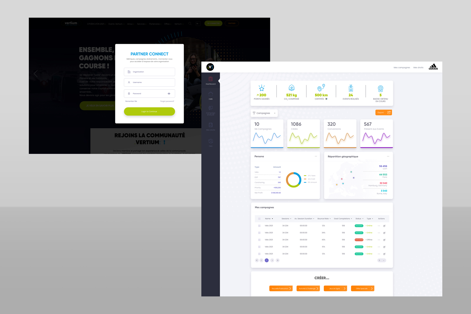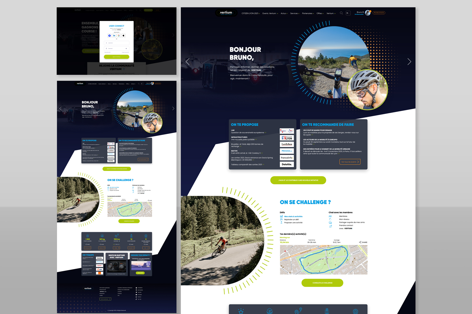 Para Vertium Race, produjimos las maquetas del sitio web público de la marca, así como las primeras páginas del «tablero» de las próximas herramientas de gestión de aplicaciones Saas.