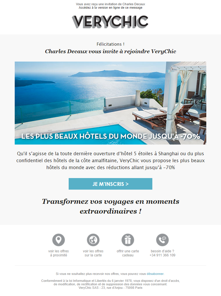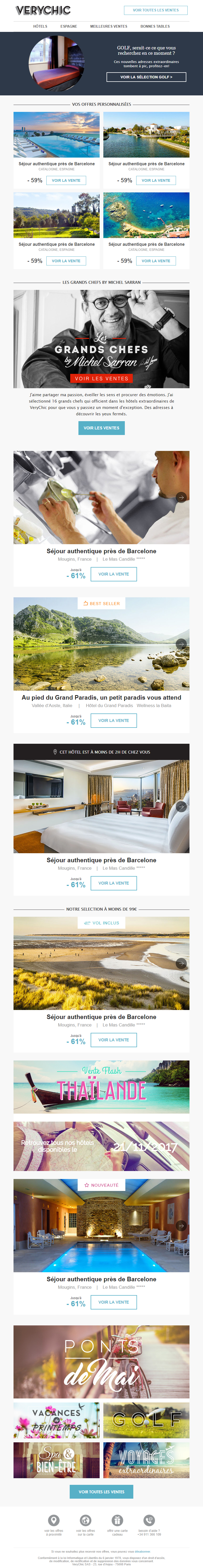 Para esta empresa online de venta privada de viajes, desarrollamos y diseñamos eficaces visuales y mailing, newsletters para ayudarles en su día a día en la acción de ventas (ventas privadas, millones de correos electrónicos enviados cada mes).